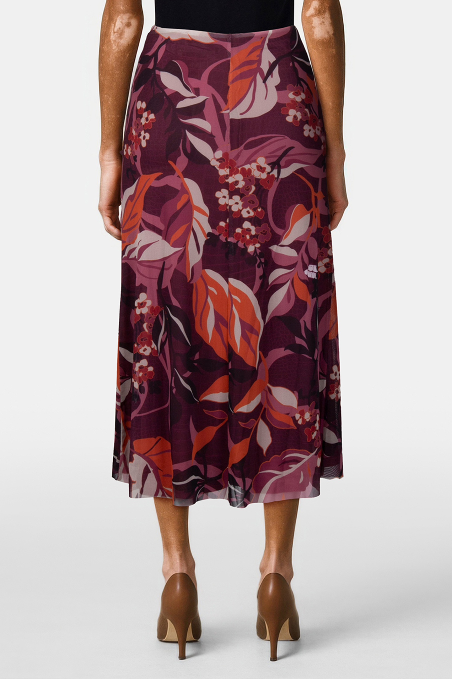 SKIRT MESH LEAVES PRINT PURPLES