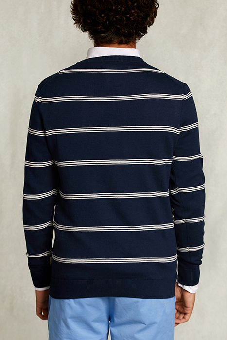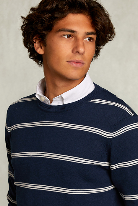 SLIM FIT STRIPED PIMA COTTON SWEATER FRENCH DARK MIX BLUE