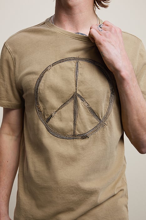 SS RAW EDGE TEE - PEACE SIGN EMBROIDERY DARK OLIVE