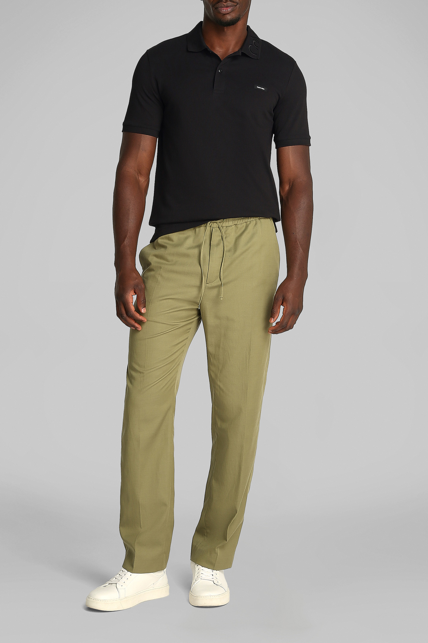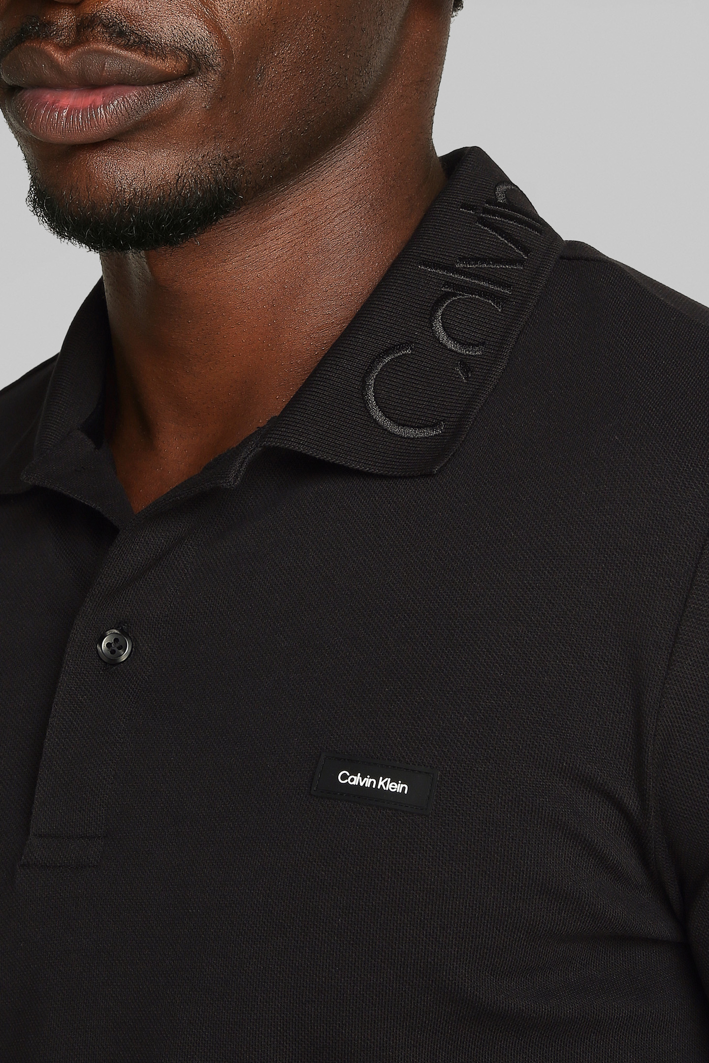 STRETCH PIQUE LOGO CK SLIM FIT POLO, BLACK