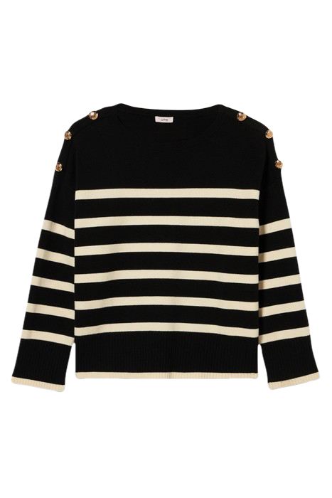 STRIPED SWEATER WITH ARMY BUTTONS BLACK