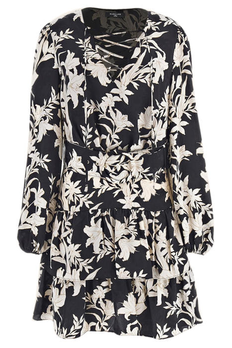 SUNBURST FLARE DRESS BLACK PRINT