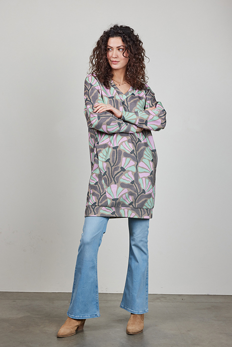 SWEAT DRESS CHILLY PRINT SAND WITH COSMIC FLOWER PRINT