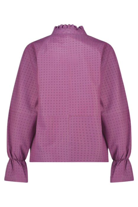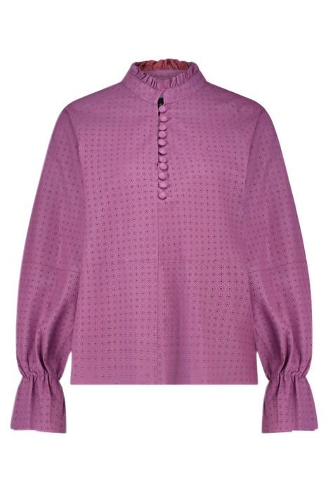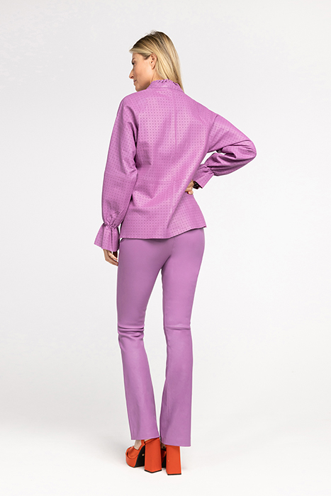The Blouse With A French Look Due To The High Neck With Gathered Collar. The Blouse Has A Laser-Cut Finish That Is Reminiscent Of Flowers. The Theli Blouse Has A Romantic Button Closure At The Back. The Blouse Is Made Of Buttery Soft Leather For Ultimate Comfort.