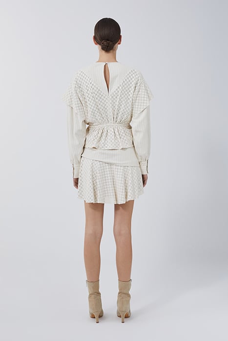 • Wp16Tilok-Whi39#• Top En Cuir Perforé#• Coupe Ample#• Emmanchures Basses#• Col Rond#• Fermeture Par Une Goutte Au Dos#• Poignets Boutonnés#• Taille Ajustée Par Cordon De Serrage#• Non Doublé#• Tannerie Certifiée Lwg#• Matière Principale: 100% Cuir D'Agneau#• Fabriquée En Turquie