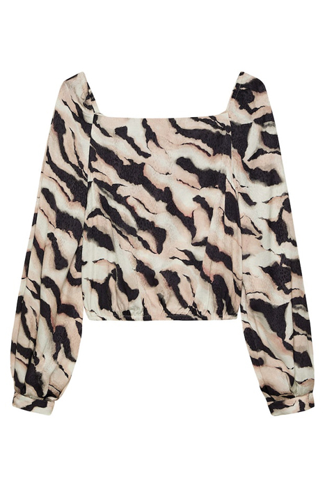 This Viscose-Blend "Yala" Top Is Inserted From Bottom To Top In An Abstract Motif With A Jacquard-Woven Animal Print On Top. The Top Has A Straight Neckline And Long Sleeves. The Elastic Edge At The Bottom Provides Extra Volume.
