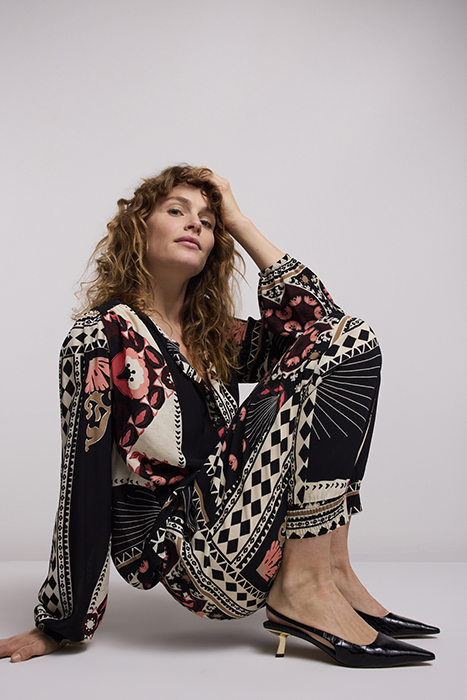 TROUSERS SCARF PRINT ELASTANE BLACK