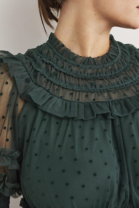 TULLE RUFFLE MIDI PARTY DRESS GRN