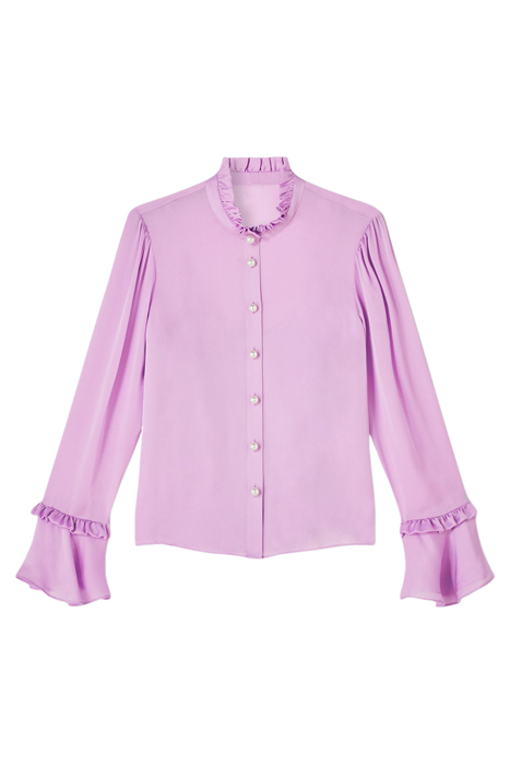 An On-Trend Colour For The Up-Coming Season, Our Lilac Anya Blouse, Makes A Fresh Addition To Your Wardrobe. Crafted From Beautiful, Luxurious Silk In The Perfect Shade Of Lilac, It Has A Round Neck With Frill Detail, Pretty Pearl Buttons, A Cami Layer And Is Finished With Matching Frills On The Fluted Cuffs. Wear It To Add Femininity To Tailored Pieces Or As A Chic Layer With Knits And Denim.