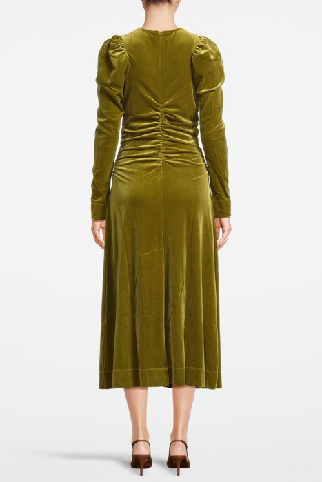 VELVET JERSEY GATHERED LONG DRESS AVOCADO