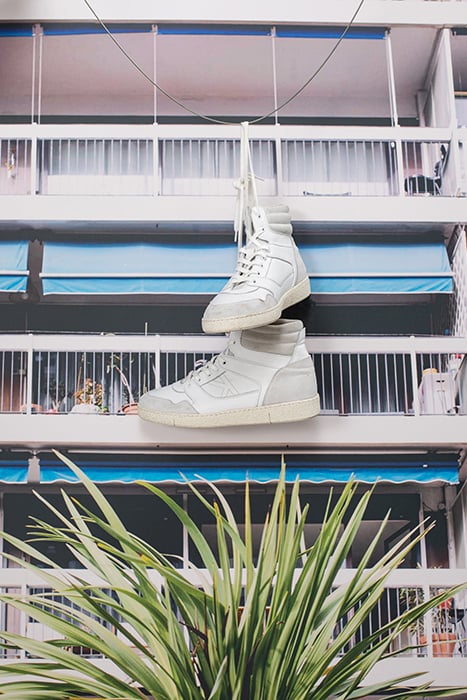 WHITE SUEDE LEATHER MIX HIGH-TOP TRAINERS